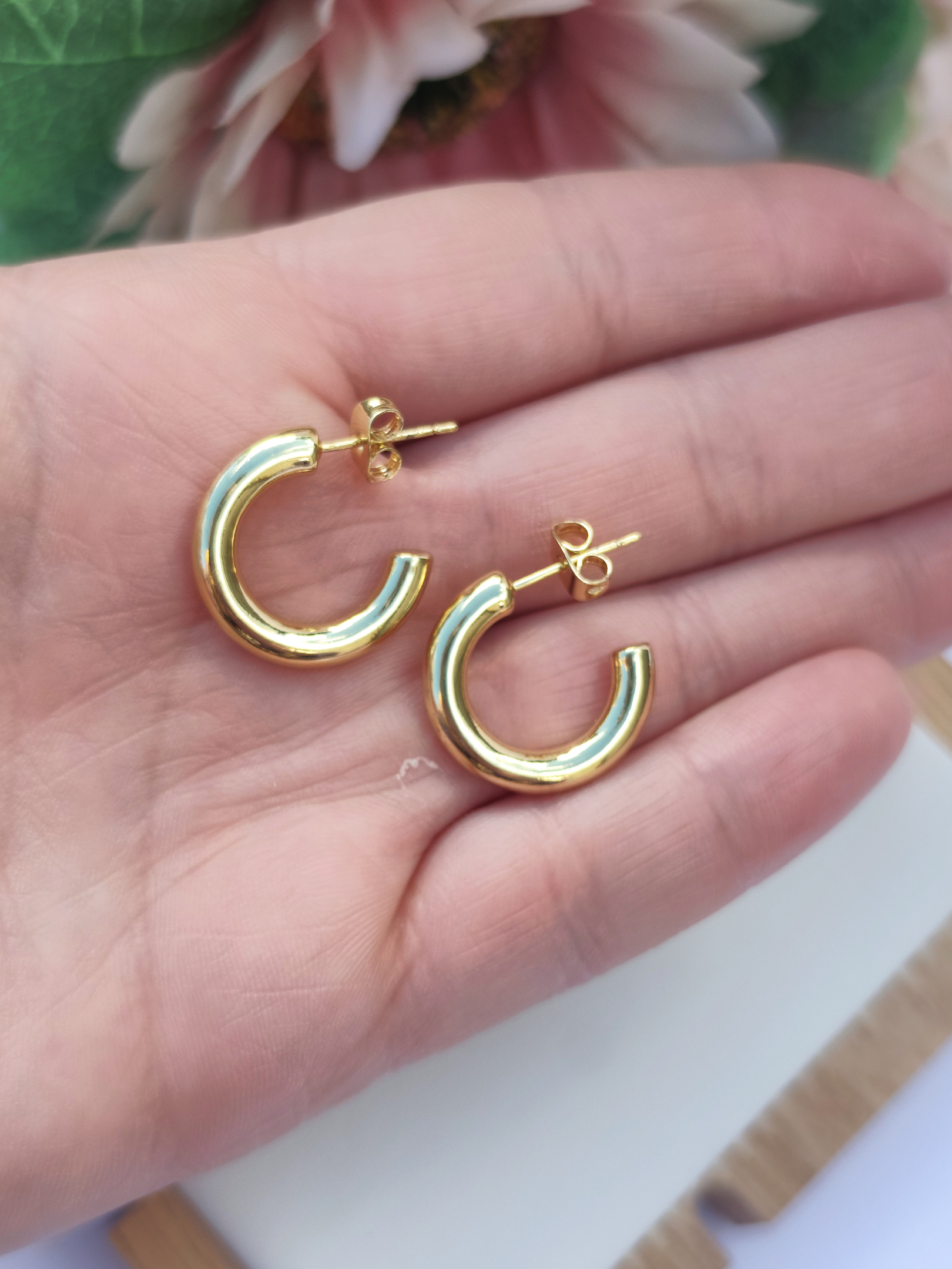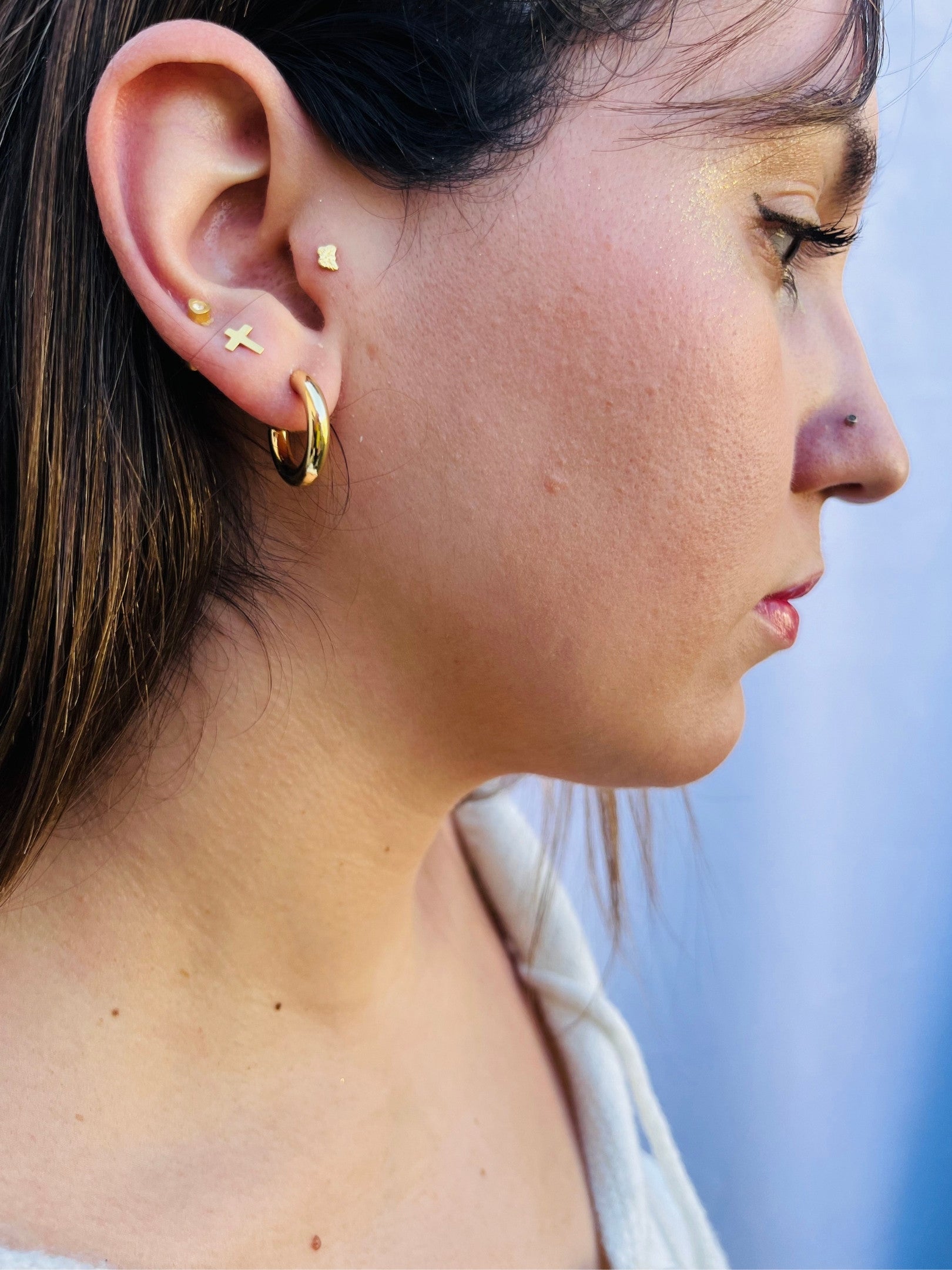 Pequeños pero poderosos. Estos aros son un recordatorio de que no necesitas mucho para brillar: tu esencia ya es suficiente. Versátiles y elegantes, acompañan tu estilo con confianza y sutileza.