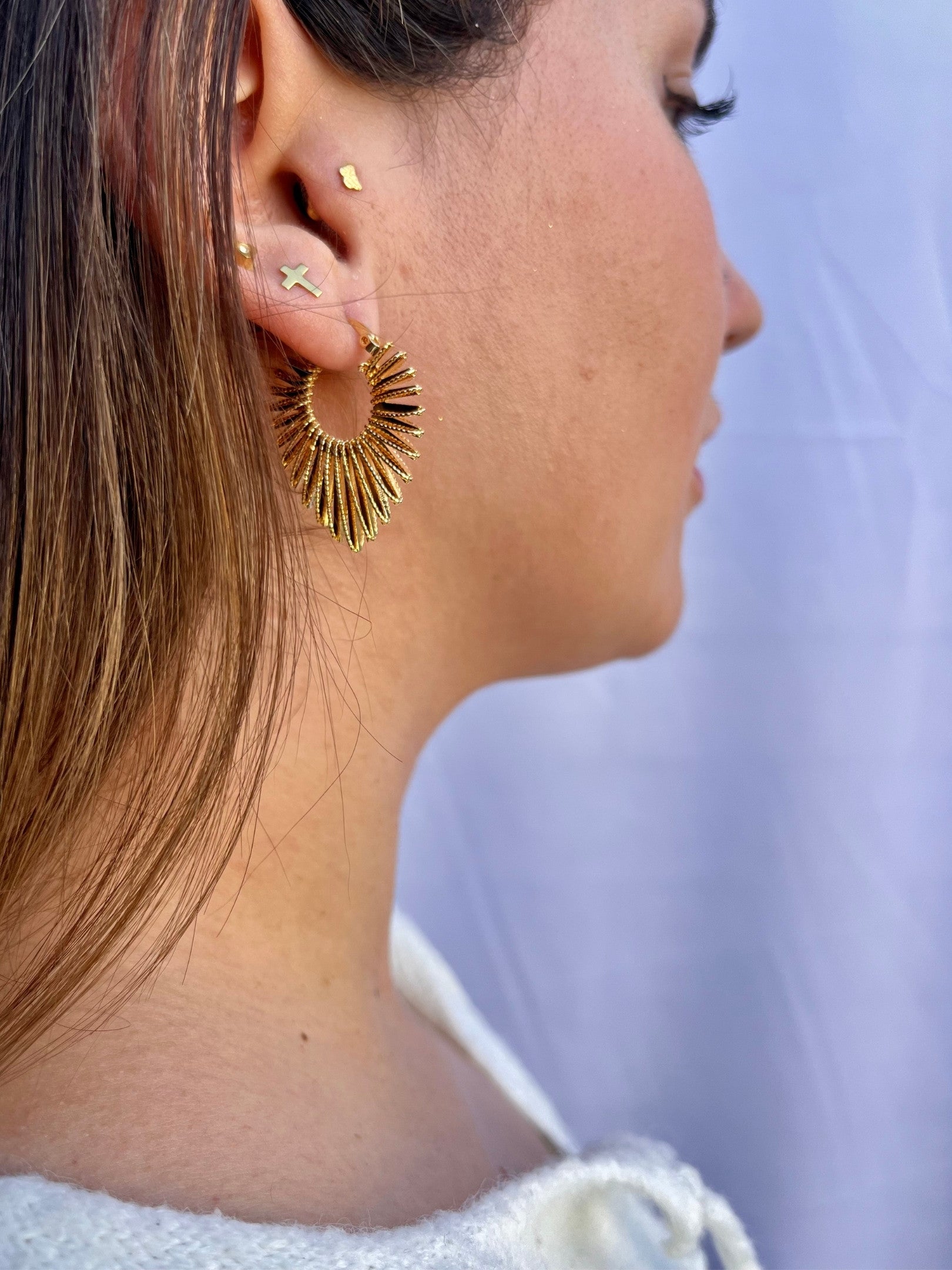 Estos aros simbolizan energía, vitalidad y poder personal. Cada rayo refleja tu capacidad de brillar sin límites y de iluminar tu propio camino. Un accesorio pensado para mujeres auténticas que saben que su luz interior merece ser mostrada al mundo.