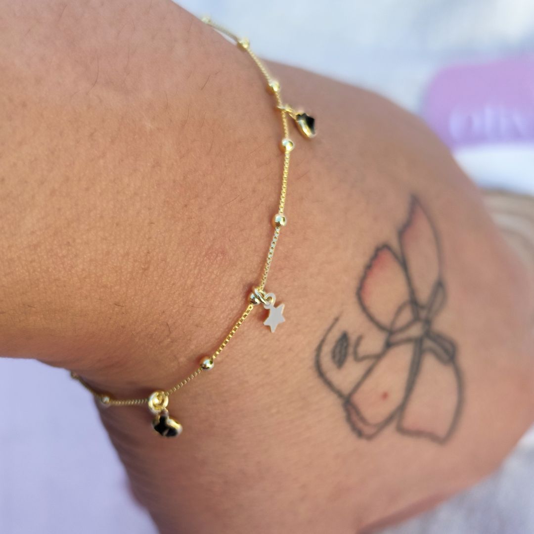 Pulsera veneciana fina con 1 Estrella 2 mini circones
